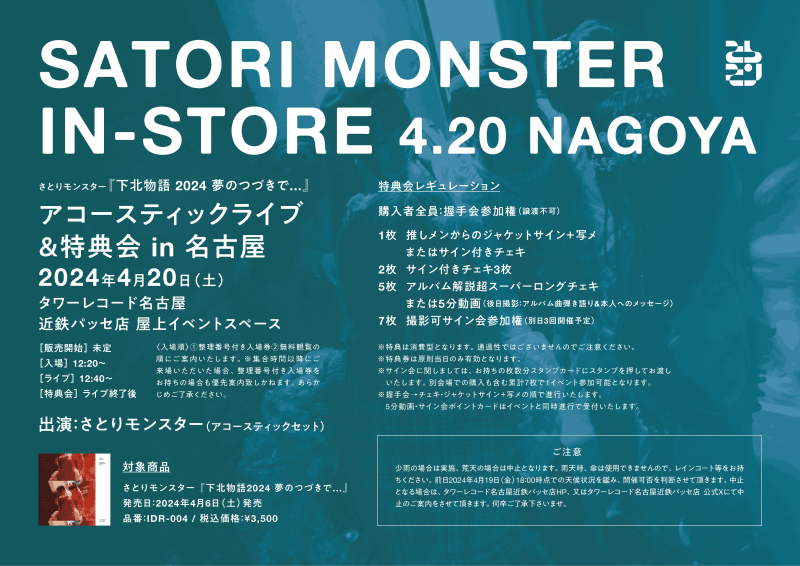さとりモンスター 『下北物語 2024 夢のつづきで...』アコースティックライブ&特典会